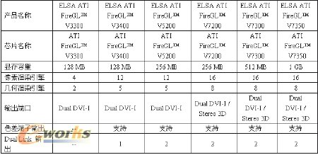 ELSA ATI FireGL™ 新一代 V 系列的规格简介: