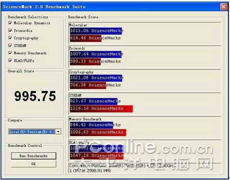 平台A在ScienceMark2下的测试结果截图(ScienceMark v2.0主要用于测试系统在科学计算应用中的性能):