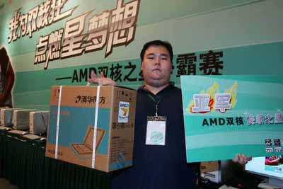 本网讯 近日,AMD“我为双核狂”第二季首站在北京举行,从数万报名者中海选而出的AMD“我为双核狂”入围选手在现场比试电脑技巧、尽情施展才艺,上演了一场男女同台PK的“IT版超女秀”。比赛全称叫“我为双核狂 点燃星梦想——AMD双核之星争霸赛”,由AMD与新浪网联合主办,联想、同方、方佳、Nvidia、Avnet(安富利)大力赞助,电脑报、Pcpop、PChome、It.com.cn等媒体协办。比赛于8月1日开始在线上招募选手。消息一出,全国各地消费者蜂涌报名。目前,已有近3万人注册报名并参与在线答题、近1300人在新浪写博客,其中北京站报名人数接近13000人,广州站、上海站报名人数还在增长中。一时间,报名参赛者挤爆门槛,在IT界掀起一场“超女”式娱乐风暴。参赛选手不少从沈阳、石家庄、天津专程赶来。