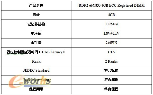 宇瞻科技DDR2 667/533 4GB ECC Registered DIMM技术规格