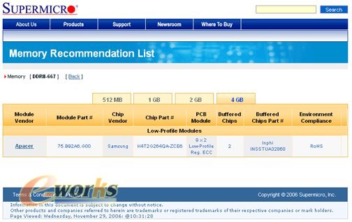 除此之外,宇瞻DDR2 667/533 4GB ECC Registered DIMM也是全球首家正式通Supermicro®H8DAE-2、H8DA8-2及H8DMR-i2平台测试的专业记忆模块厂商,完全符合新一代AMD Opteron™平台服务器和工作站之需求。