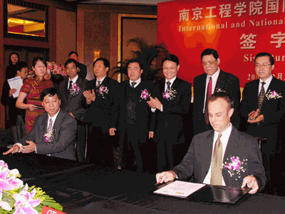 南京工程学院与GE Fanuc公司签约(左为南京工程学院陈小虎院长,右为GE Fanuc公司副总裁Bill Estep)