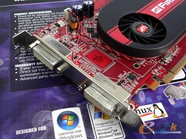 显卡散热器上印有一行非常醒目的FireGL字样,让人一看就知道这款产品源于ATI的专业卡系列,突显高贵。全铜工艺制造的散热器,散热效果应该非常不错,降低用户在思考操作时的噪音困扰。