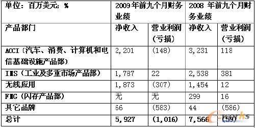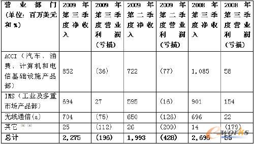ACCI的 (汽车/消费电子/计算机/通信基础设施产品部)第三季度净收入环比增幅18%,达到8.52亿美元,反映了随市场情况开始好转,计算机和汽车市场开始强劲增长。ACCI第三季度营业亏损3600万美元,上个季度营业亏损7700万美元,去年同期盈利5800万美元。