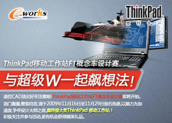 大赛官方网站:与超级W一起飙想法——ThinkPad移动工作站F1概念车设计挑战赛 http://www.e-works.net.cn/report/thinkpad/thinkpad.htm