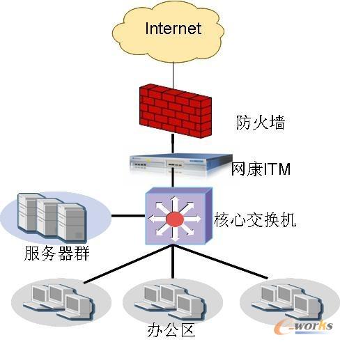 一、在网络出口出部署一台网康ITM产品,以优化网络出口处的带宽质量。