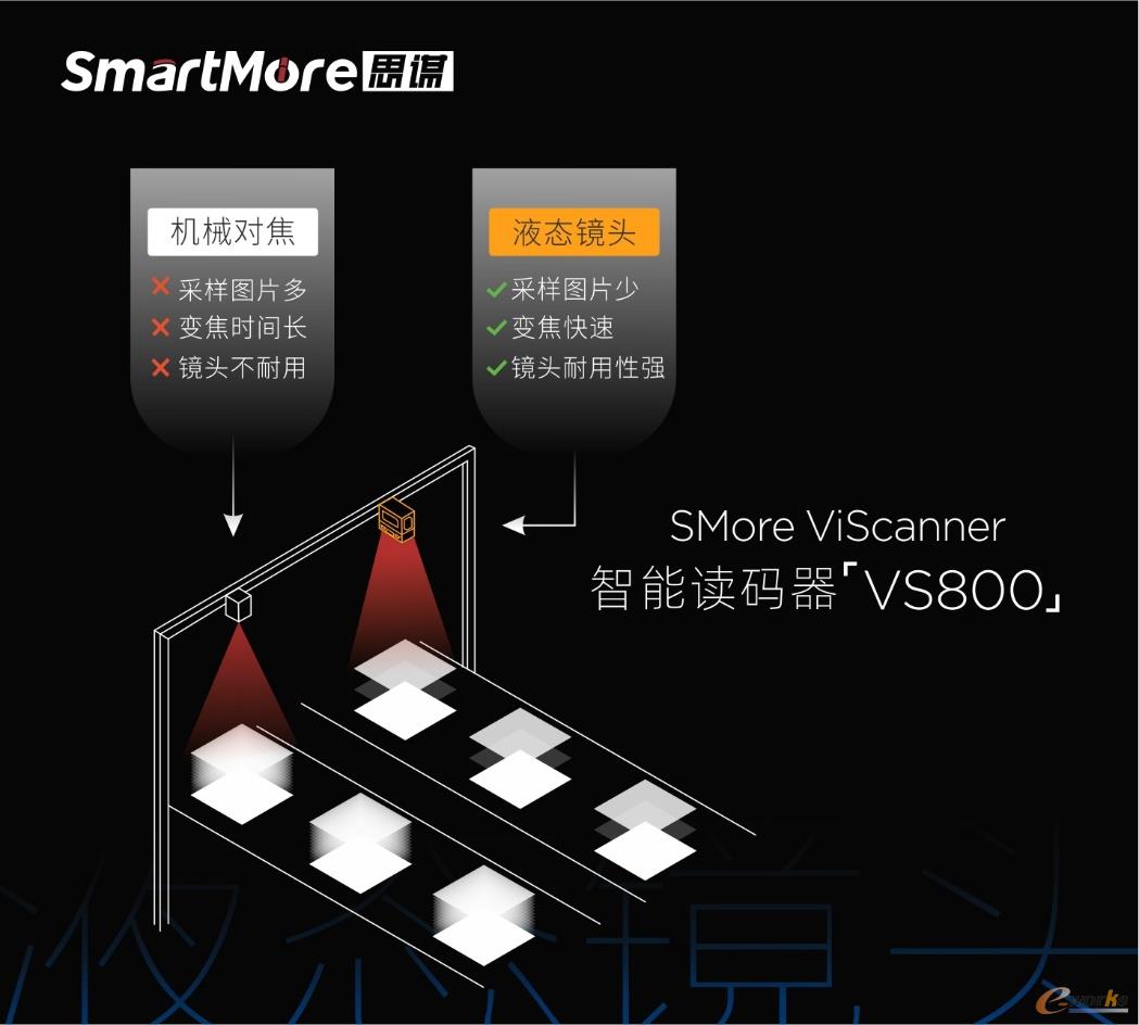 近日,思谋科技全新推出SMore ViScanner智能读码器VS800(以下简称VS800),采用液态镜头,搭载深度学习算法,自动变焦速度与解码速度均达到毫秒级别。VS800具有读码速度快、工作距离灵活、操作简单、体积小易安装等强大特性,适用于空间狭小、难以安装的场景,可为用户提供超强性能、超高性价比的读码解决方案。