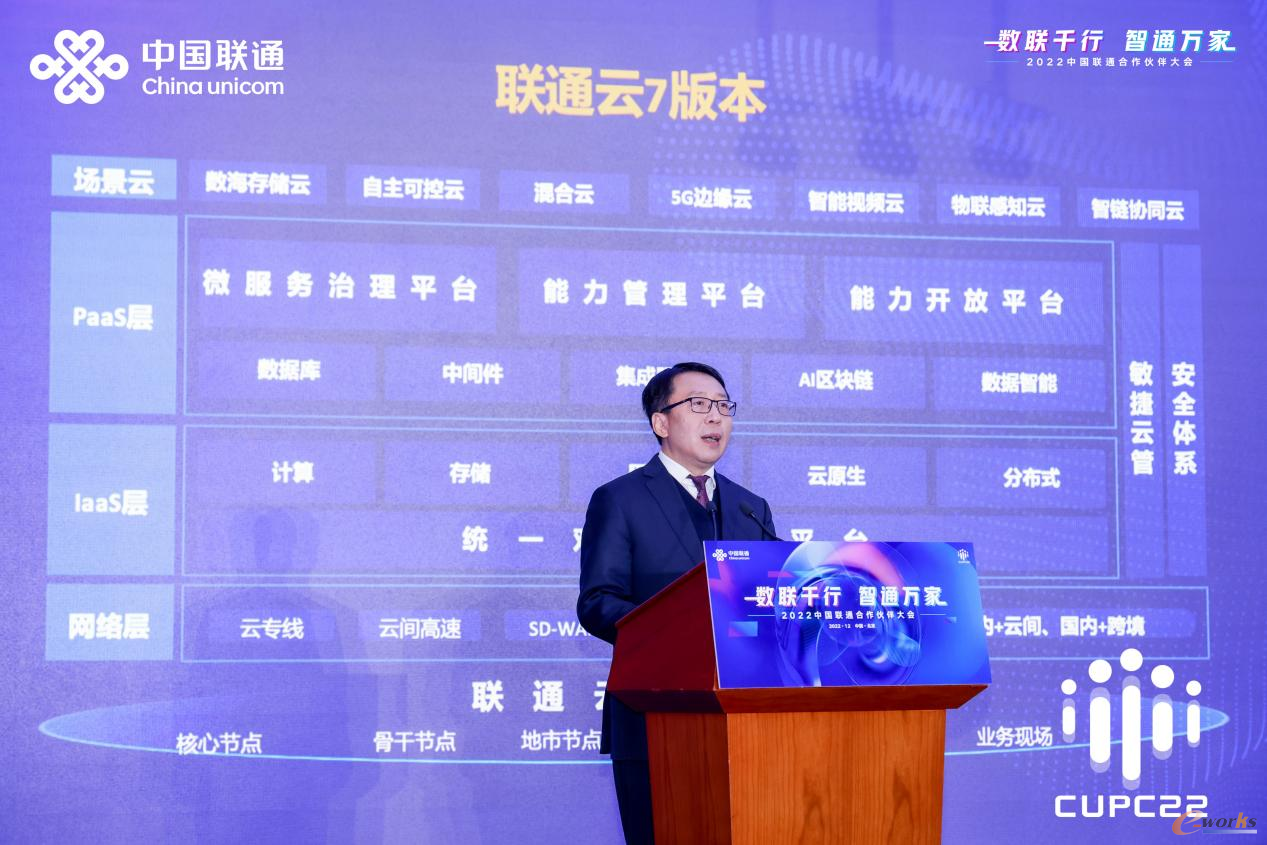 12月20日上午,在“数联千行,智通万家”2022中国联通合作伙伴大会上,中国联通副总经理梁宝俊正式发布“一朵云、三平台”——全新升级的联通云7版本、“格物”设备管理平台、“资治”政务大数据平台、“墨攻”安全运营服务平台。