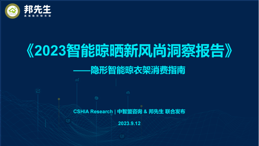 2023年9月12日晚上19:00,CSHIA Research中智盟咨询与好易点旗下的高端隐形智能晾衣架品牌邦先生,联合发布了《2023智能晾晒新风尚洞察报告》。本次发布会在杭州举行,并面向全网进行线上直播。
