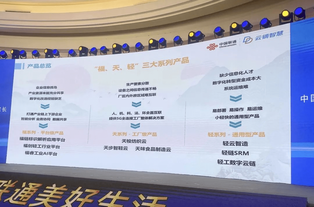 智造数字轻工,联通美好生活。9月13日,智慧轻工高质量发展大会在福建泉州隆重举行。此次大会上,由福建联通与云镝智慧联合成立的中国联通智慧轻工军团正式落成!同时,全面发布军团发展规划及专精特新产品,形成“福”字头平台、“轻”字头产品、“天”字头应用三大品牌,深耕轻工领域工业互联网转型升级,立足福建、服务全国,奋进“智慧轻工”新征程。