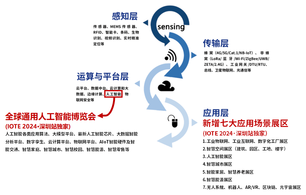 而在IOTE 2024 深圳站中,IOTE主办方深圳市物联网产业协会还将联手深圳市人工智能产业协会,打造针对AIoT产业的同期展会——全球通用人工智能大会暨博览会。