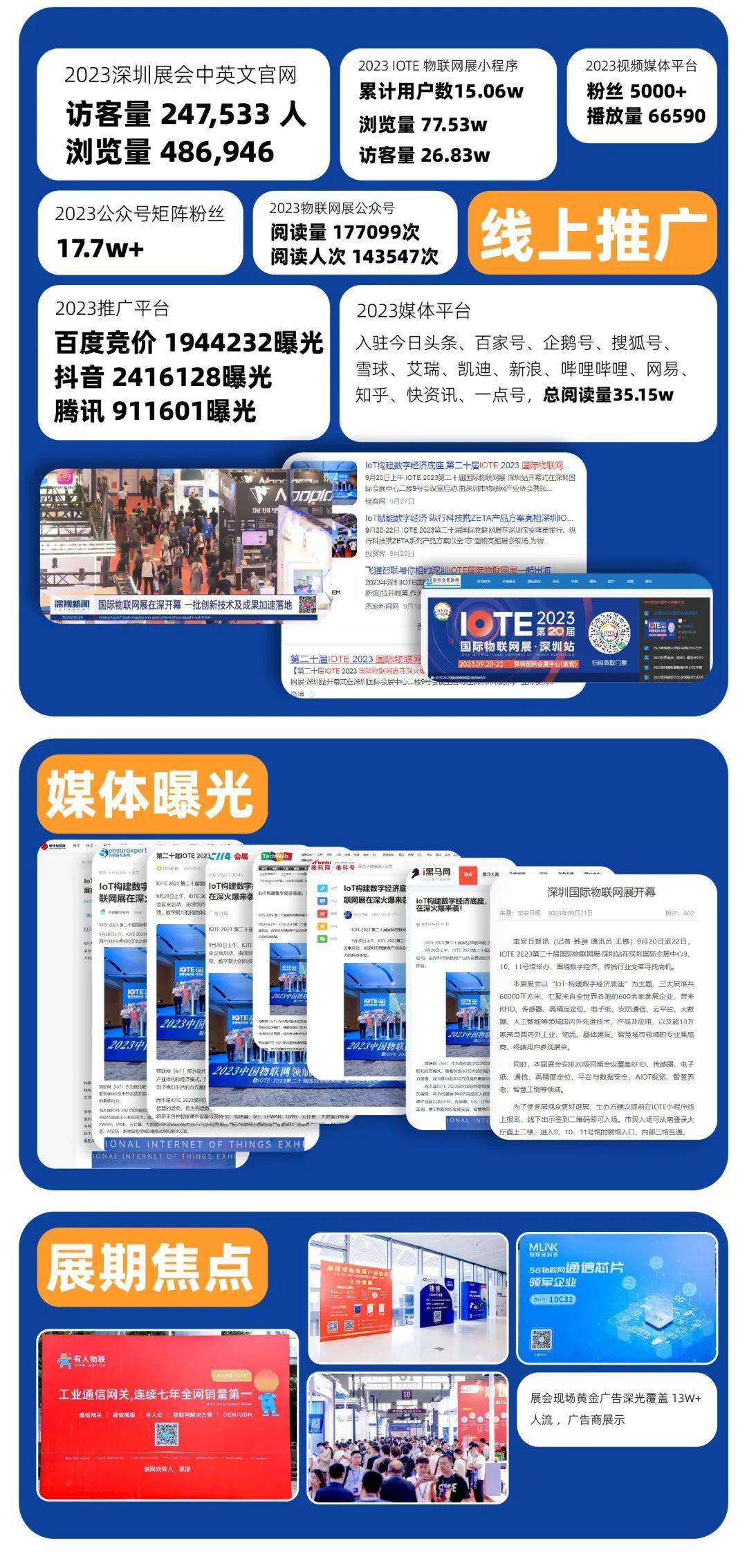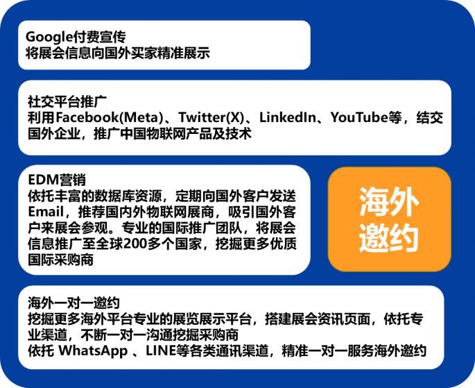 IOTE 物联网展不仅拥有极佳的客户服务,还拥有最广泛的传播渠道,参加IOTE 物联网展,便能同时享受独有的线上宣传。