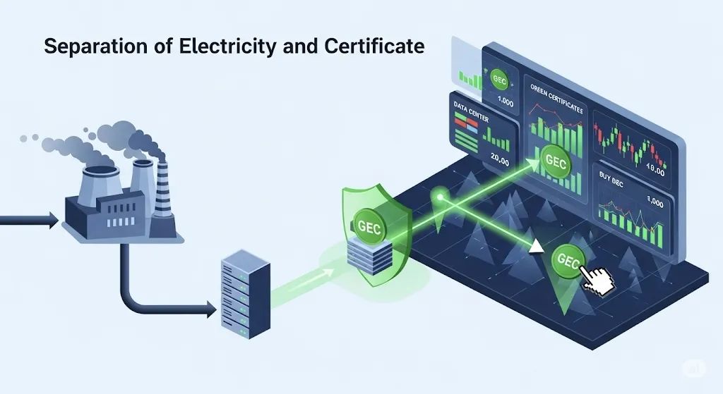 “电证合一”到“电证分离”的价值核算:这是绿色价值被市场公允定价的关键。在市场发展的初期,“绿电”与“绿证(GEC)”通常是捆绑交易的(电证合一)。而一个更成熟的标志是“电证分离”交易机制的完善。绿证作为绿色电力的唯一“身份证”,可以从物理电能中剥离出来,形成一个独立的、可交易的金融资产。这意味着,即便一个数据中心因物理条件限制无法100%使用直供绿电,它依然可以通过在市场上购买足额的绿证,来抵消其使用的火电的环境外部性,从而宣告其实现了100%的绿色电力消费。这个机制极大地提升了企业实现碳中和目标的灵活性,并催生出一个活跃的、以绿色属性为标的的金融市场。