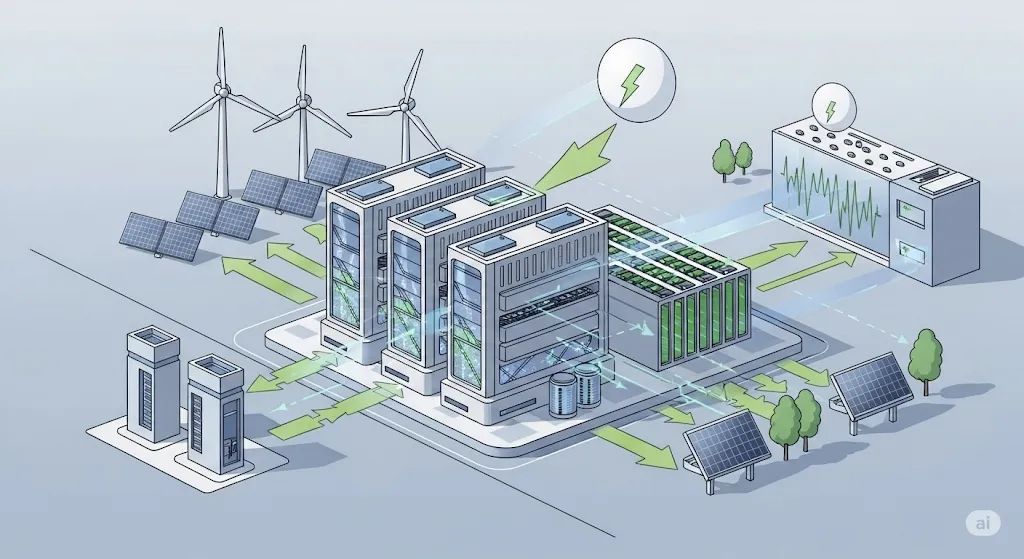 当绿电充裕、电价低廉时,它可以满负荷运行并为储能系统充电;当电网高峰承压时,它能主动降低非核心任务的算力功耗,甚至通过储能设施向电网反向输电,参与调峰、调频等辅助服务。这种转变的战略意义在于,它将数据中心从一个能源消耗问题,变成了提升电网韧性与绿电消纳率的解决方案的一部分。