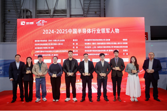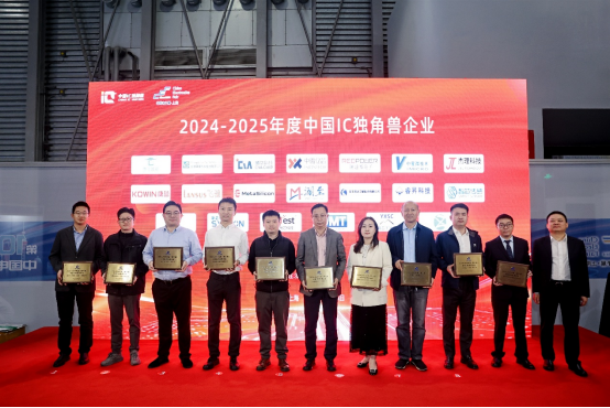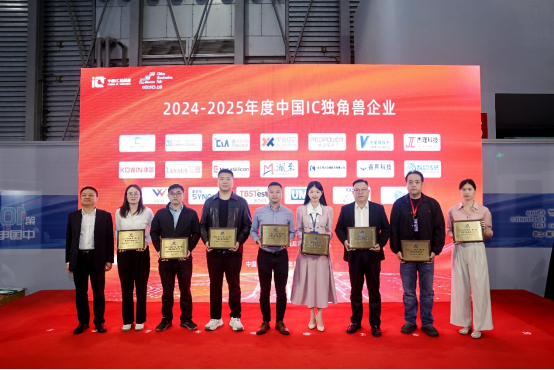 论坛同时发布了2025第八届中国IC独角兽榜单和2024-2025中国半导体行业高质量发展创新成果征集成果榜单及颁奖典礼。中电会展与信息传播有限公司总经理 陈震宇、赛迪顾问副总裁李珂、江苏半导体行业协会副秘书长吴健、中国IC独角兽联盟副理事长、北京芯合汇科技有限公司董事长张彤炜作为颁奖嘉宾,对获评企业进行颁奖。