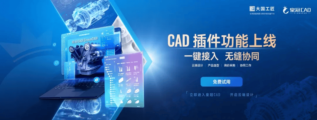 为了更好地服务广大装备企业和工程师用户,提升研发设计和产品选型的应用体验,全国装备制造业数字供应链平台大国工匠携手华天软件,正式上线“CAD插件”功能,提供集云端设计、设计选型、协同工作、询价采购等业务的一站式工业互联网技术服务平台。