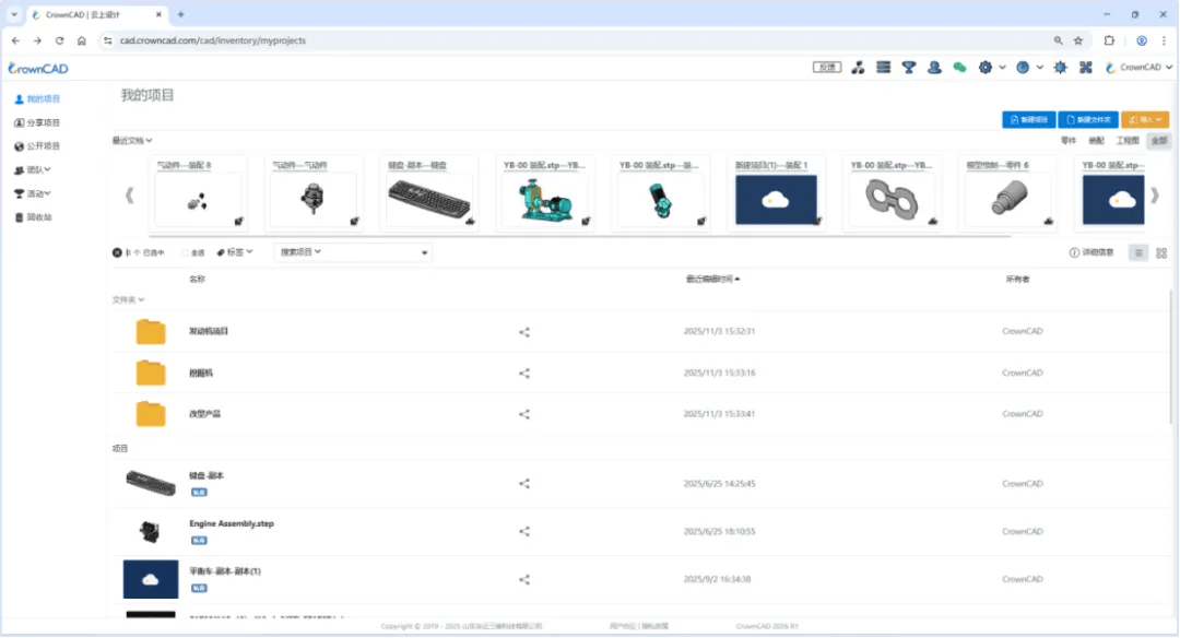 国产三维CAD皇冠CAD以“项目”为中心,将所有关联数据——无论是零件装配体,还是PDF、图片等异构文件,都集中收纳于统一的云端项目内,并支持构建企业专属外购件库,确保数据资产完整、可控。