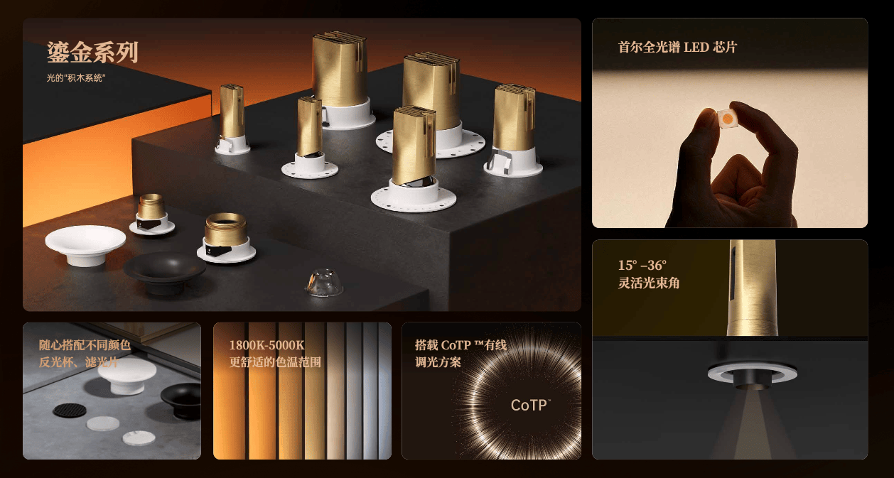 鎏金系列,是SUBLIME在智能照明领域的系统性探索。搭载CoTP™有线协议,实现丝滑跟手的调光体验。无论是住宅、商业,还是艺术空间,都能通过“光的积木系统”,构建出兼具美学与专业性能的全场景照明体验。