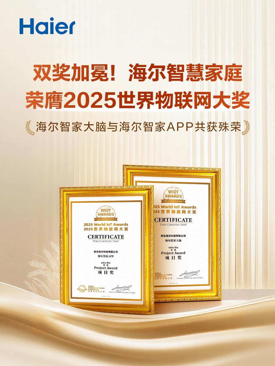 海尔智慧家庭持续强化、开放并加速智慧居住领域战略布局,如今再添重磅新成果。11 月 29 日,在首届全球万物智联数字经济可持续发展大会暨2025(第十届)世界物联网大会上,海尔智慧家庭凭借“海尔智家大脑”与“海尔智家APP”两大核心成果,一举斩获两项世界物联网大奖。从第六届世界物联网大会至今,海尔智慧家庭已累计斩获8项大会奖项,涵盖项目奖与数字经济优秀案例奖。